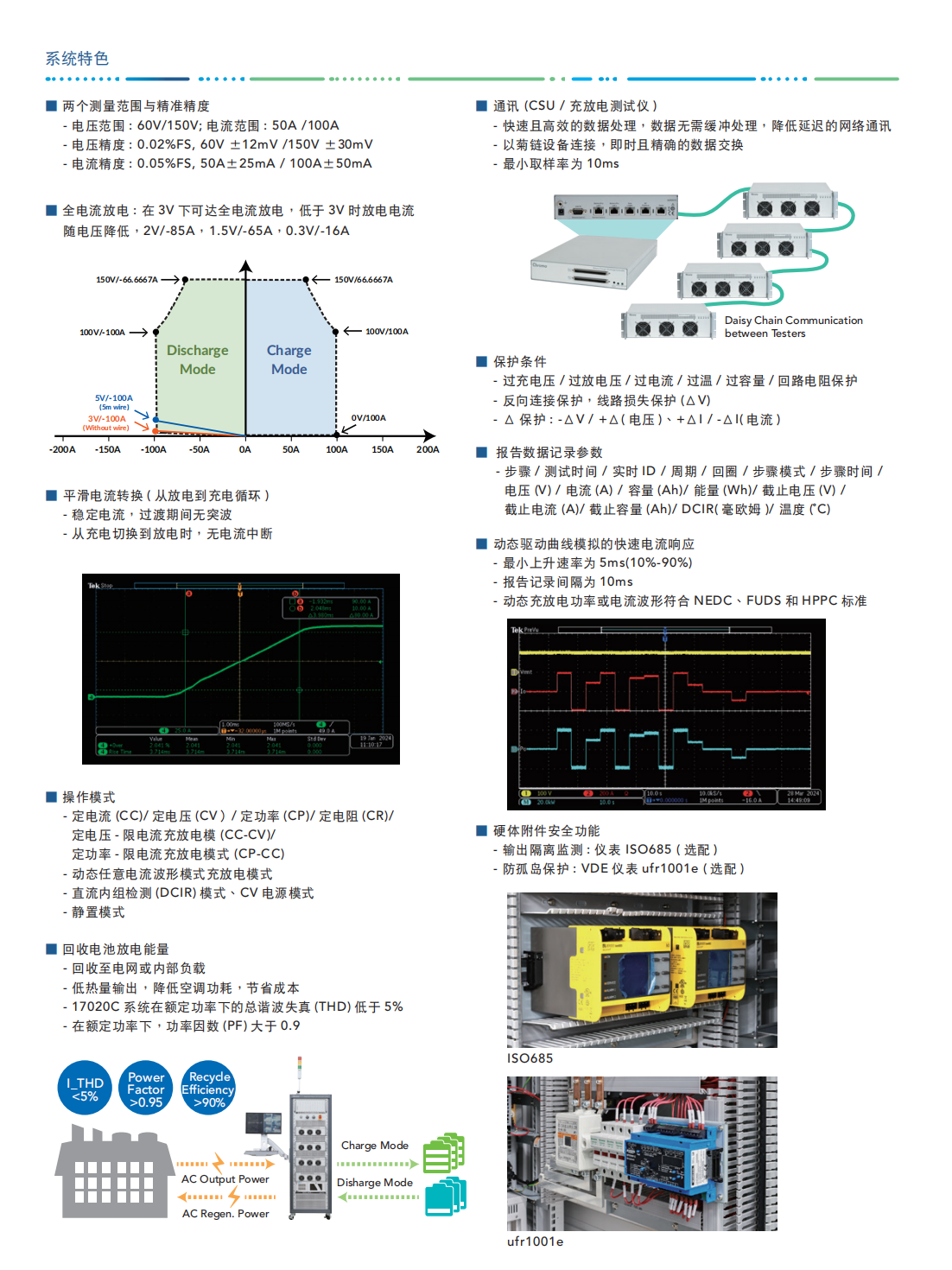 Chroma 17020C系统是专门为二次电池模组及电池包测试设计的高精密设备,适用于电池模组/电池包的续航力试验、产品进出货检验设计验证研究,并可进行生产线上容量学习(Learning)与测试。