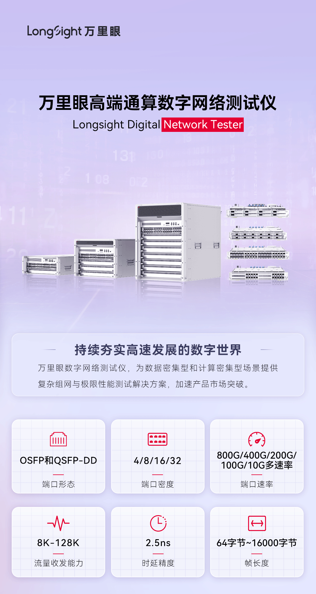 持续夯实高速发展的数字世界万里眼数字网络测试仪,为数据密集型和计算密集型场景提供复杂组网与极限性能测试解决方案,加速产品市场突破。